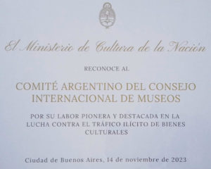 Con motivo de la Conmemoración del 20 aniversario del Comité Argentino de Lucha Contra el tráfico Ilícito de Bienes Culturales el día 14 de noviembre se realizó un acto en la sede Palacio San Martín de la Cancillería Argentina.